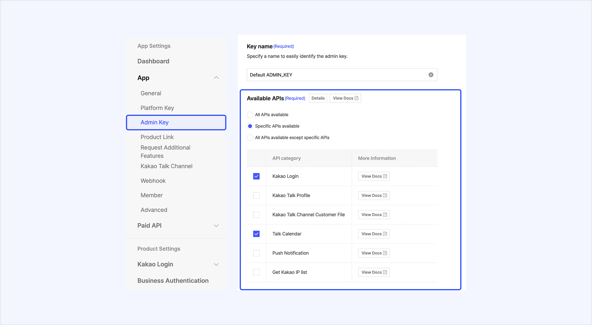You can now configure platform information and product-specific information registered in the Kakao Developers app by app key. The major changes are as follows.