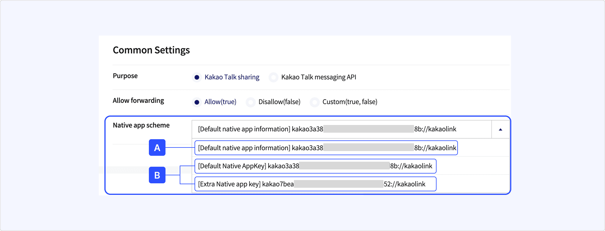 • If a specific key's native app scheme is selected in Common settings: The corresponding scheme value is displayed.