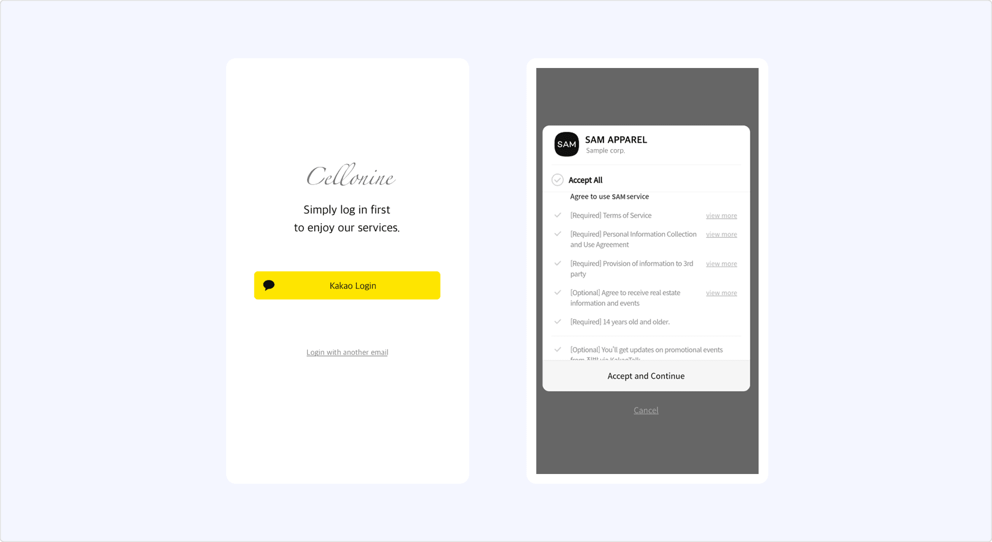 - If additional user information is required for signup, request additional consent to obtain it from Kakao or collect it independently.
