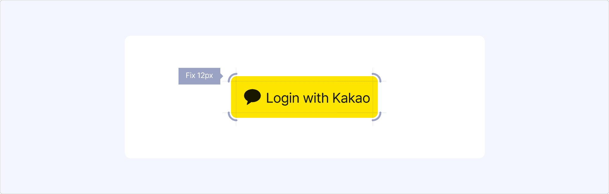 The Kakao Login button consists of a symbol that looks like a chat bubble, a label that guides what users can do with the button, and a container that wraps the two components.