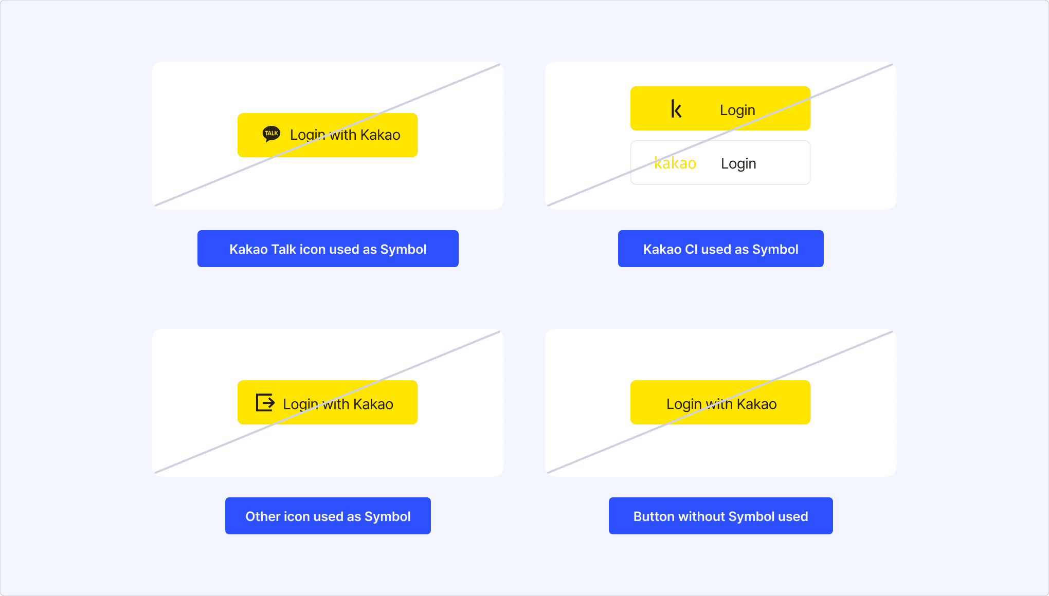 You must comply with the following design guidelines when you add the Kakao Login button when integrating the Kakao Login function in your service.