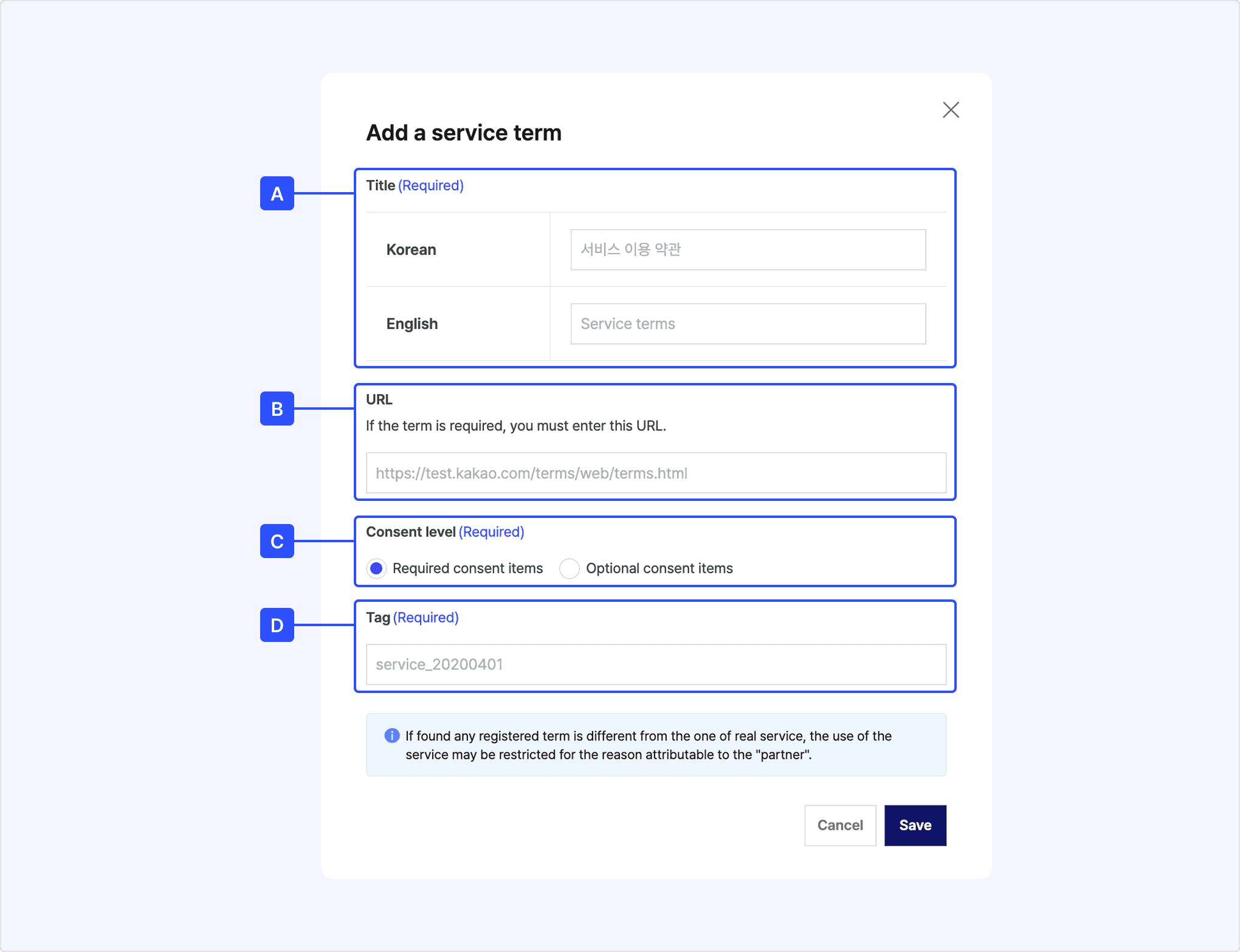 [D] Tag: Enter a unique value to distinguish each service terms.