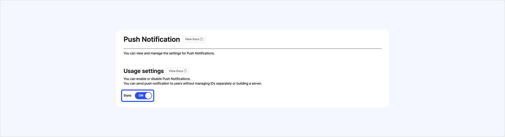 - Enable the feature in [Push notification] > [Enable] on the app management page.