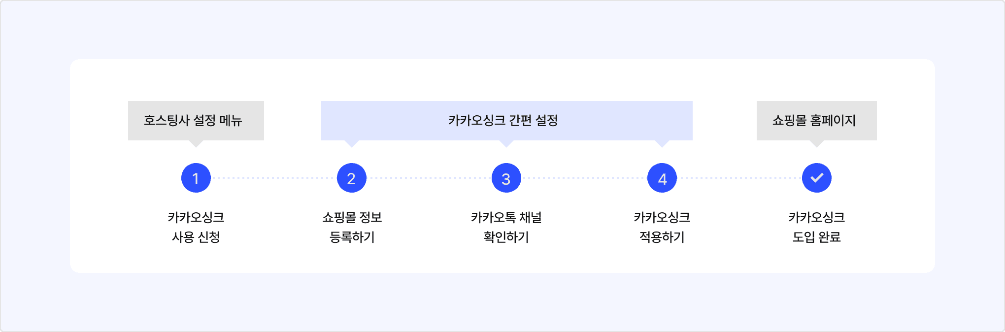 호스팅사 기반의 쇼핑몰에서 카카오싱크 도입은 사전 연동 작업을 마친 호스팅사에서만 이용 가능합니다. 각 쇼핑몰은 호스팅사의 설정 가이드를 참고해 간편설정 팝업으로 카카오싱크를 적용할 수 있습니다.