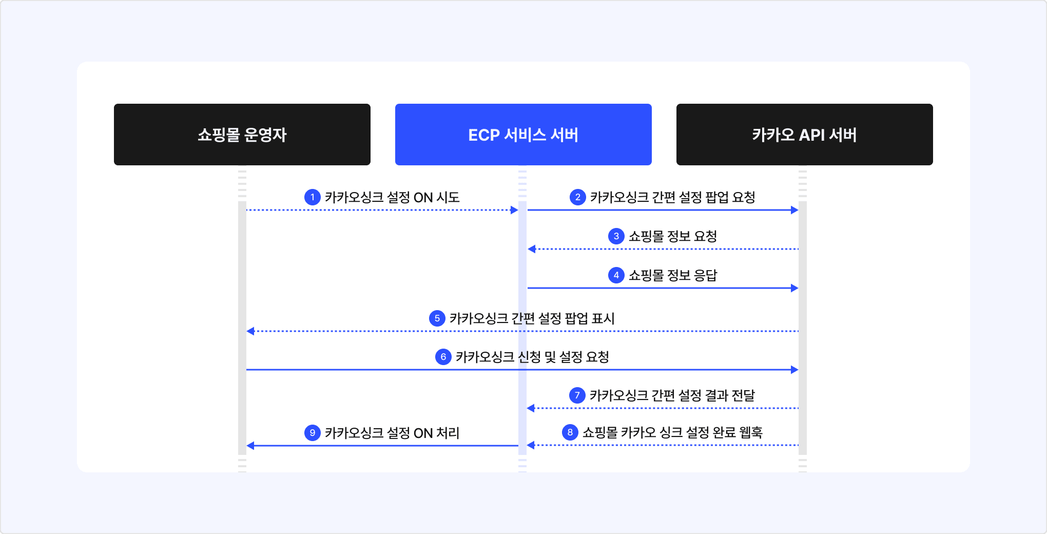 - 카카오가 쇼핑몰 운영자에게 카카오싱크 간편설정 팝업을 출력합니다.