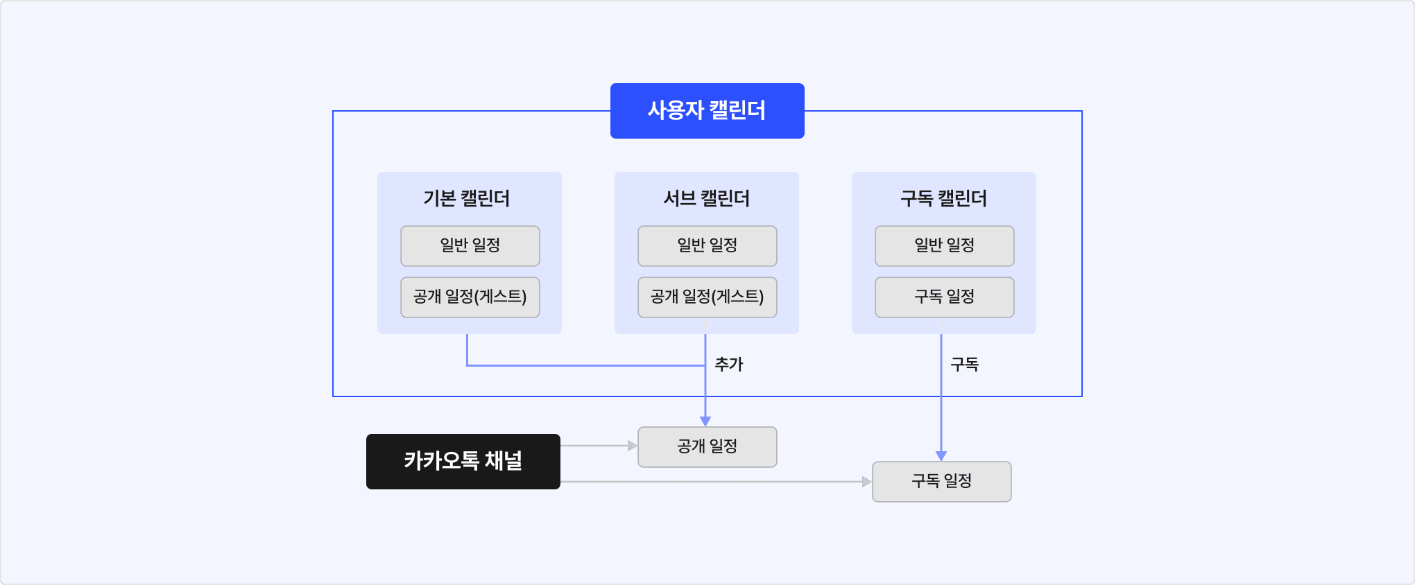 카카오톡 채널 관리자가 발행하고 관리하는 관심사 기반의 캘린더입니다. 사용자는 구독 캘린더를 구독해 일정을 확인하고 관리할 수 있습니다.